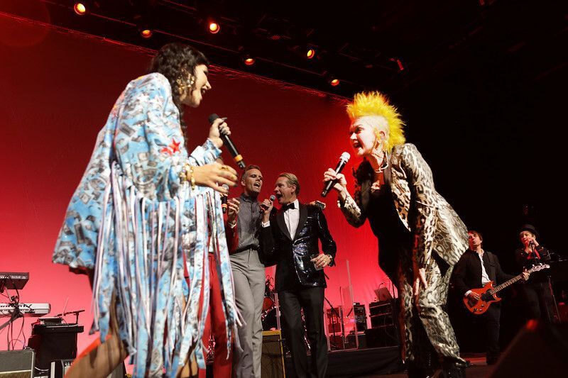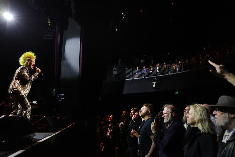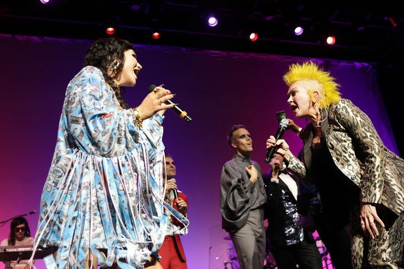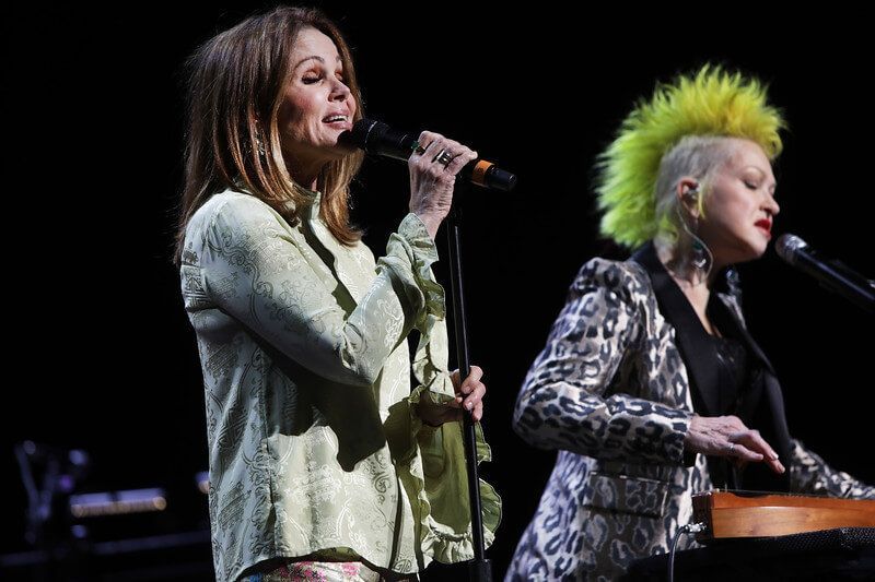 In addition to Kesha, additional celebrities supporting Cyndi at the Novo Theater included: Billy Porter, Brandi Carlile, Belinda Carlisle, King Princess, Charlie Musselwhite, Henry Rollins, Perry Farrell with Etty Lau Farrell, Justin Tranter, K. Flay, Emily Estefan, Shawn Wasabi, comics Carol Leifer and Lily Tomlin, U.K. comedian Gina Yashere, Margaret Cho, and Carson Kressley. Taylor Swift, Billie Eilish, Mariah Carey, Dolly Parton, Lady Gaga, Kelly Clarkson, Dua Lipa, Kacey Musgraves, RuPaul, and Tegan and Sara are among the artists who have donated items and experiences for a charity auction with 100% proceeds supporting True Colors United.