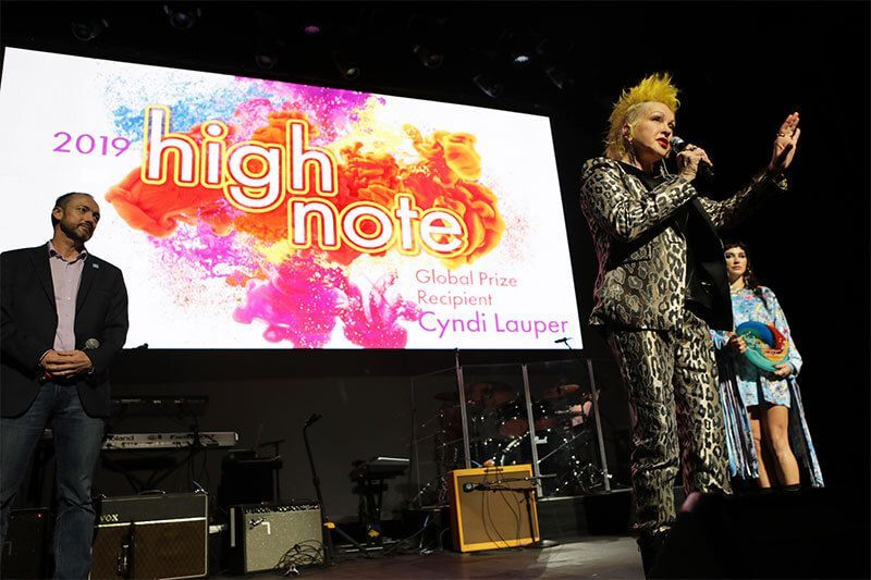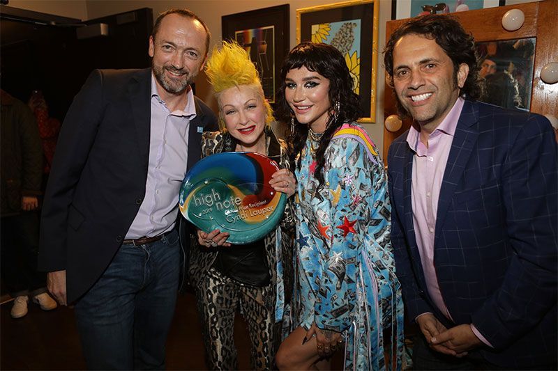 The inaugural High Note Global Prize was presented during the High Note Honors segment of Cyndi Lauper & Friends, a benefit concert headlined by Cyndi Lauper to raise awareness and funds for the LGBTQ community. The concert was staged at the Novo Theater at LA Live on December 10th – Human Rights Day, a day supported by the 193 Member States of the United Nations. Following an all-star salute to Cyndi for her lifelong work supporting the LGBTQ community worldwide, a representative of United Nations Human Rights and Kesha presented Cyndi with the High Note Global Prize. Proceeds from the evening will benefit True Colors United.